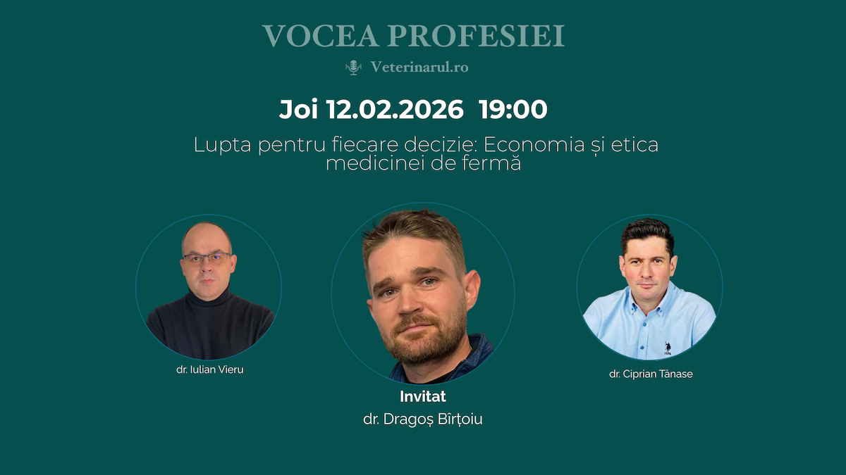 Există o imagine idilică sau, uneori, una pur rudimentară despre ceea ce înseamnă medicina veterinară de fermă. Joi, 12 februarie 2026, la ora 19:00, în emisiunea „Vocea profesiei” de pe veterinarul.ro invitatul ediției este Dr. Dragoș Bârțoiu, un nume care și-a șlefuit propriul renume în „tranșeele” fermelor moderne. O recomandăm cu căldură tuturor medicilor veterinari, fermierilor și pasionaților pentru a descoperi noi resurse și inspirație.