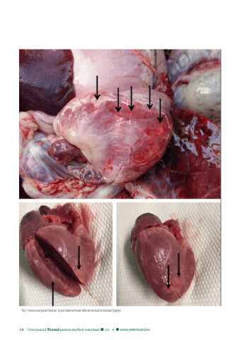 16 Veterinarul Ferm%u0103 pentru medicii veterinari l nr. 4 l www.veterinarul.roFig 1: Inima unui purcel %u00een%u021b%u0103rcat. Se pot observa focare albe de necroz%u0103 %u00een miocard (s%u0103ge%u021bi)